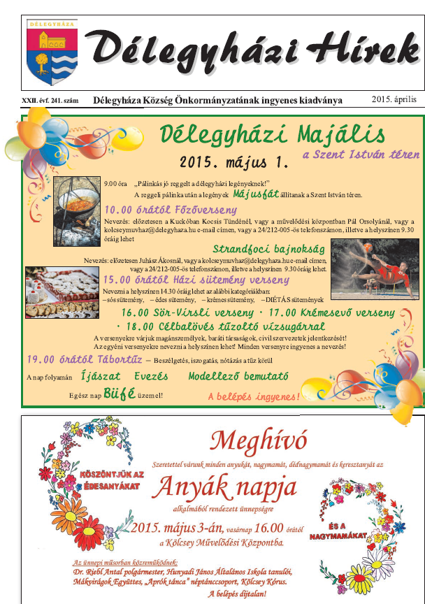 Megjelent a Délegyházi Hírek 2015. április havi száma