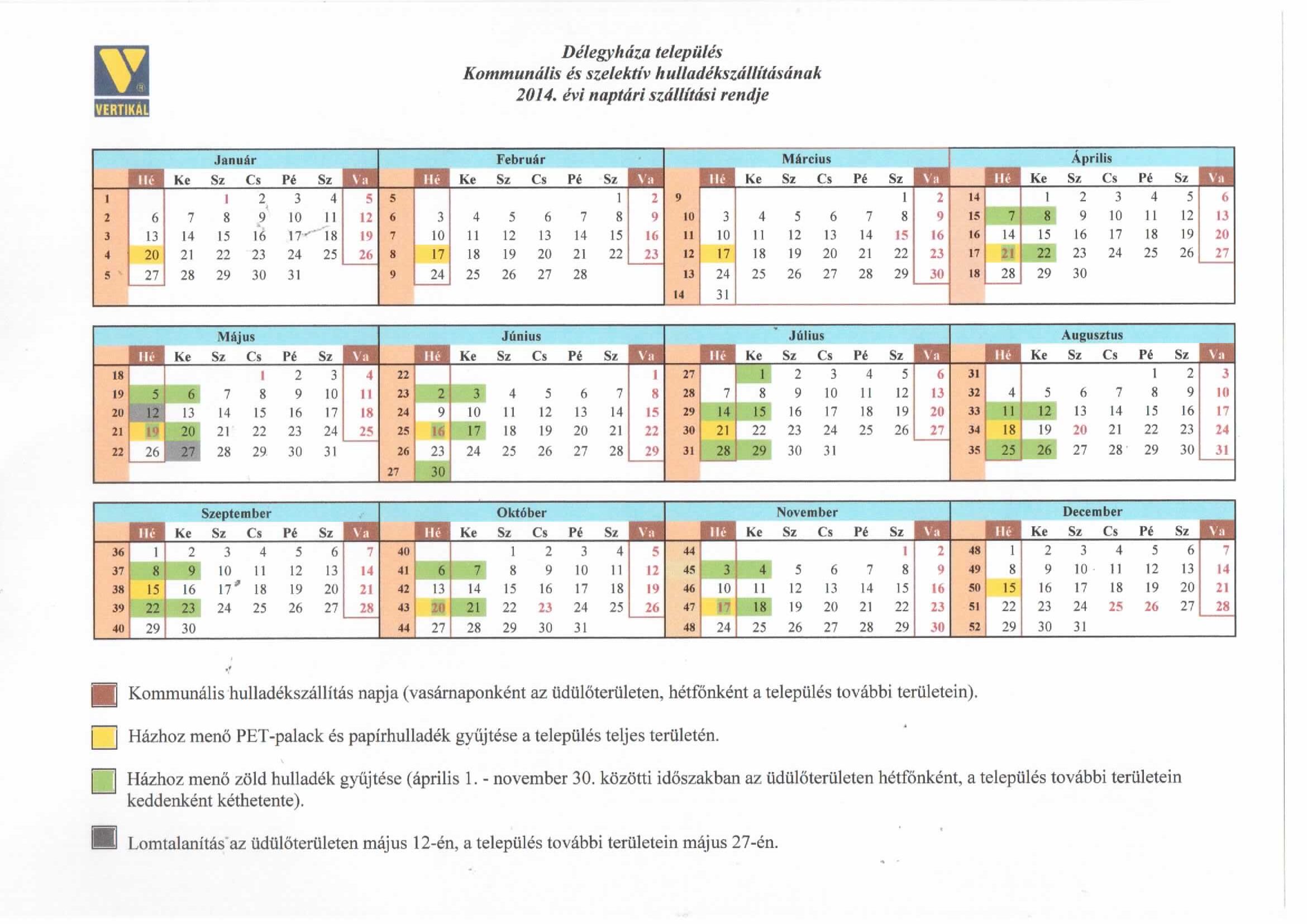 Lakossági kérésre közzé tesszük a hulladékszállítás rendjét tartalmazó táblázatot, mely a képre kattintva, vagy innen tölthető le.