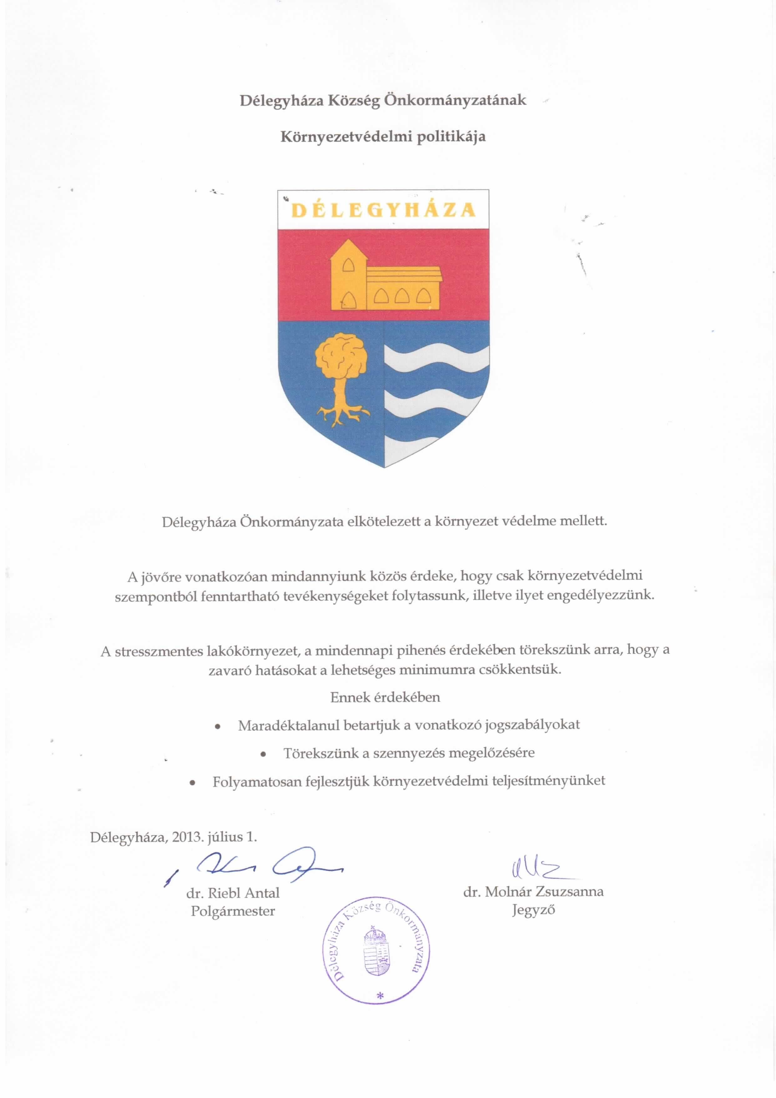 Délegyháza környezetvédelmi politikája - nyilvános közzététel