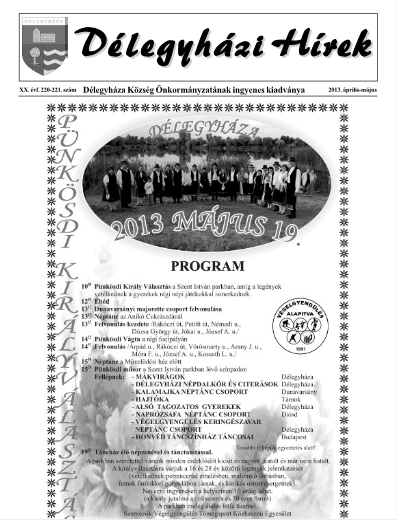 Megjelent a Délegyházi Hírek április-májusi összevont száma